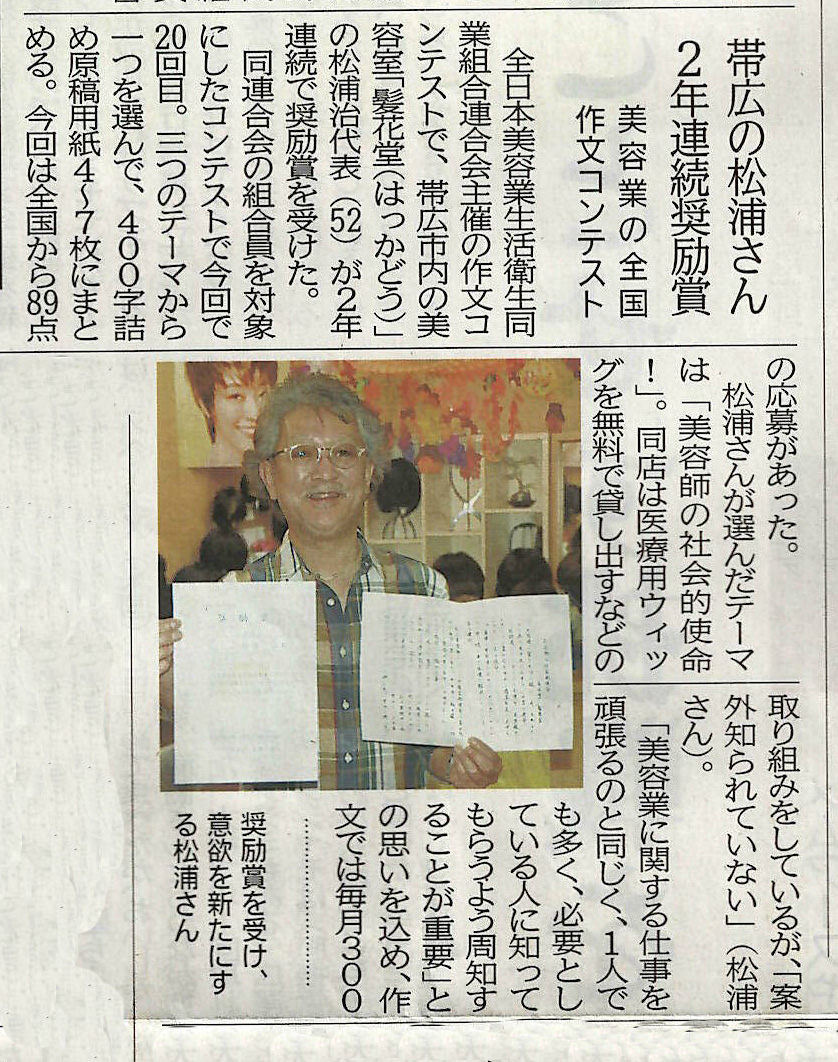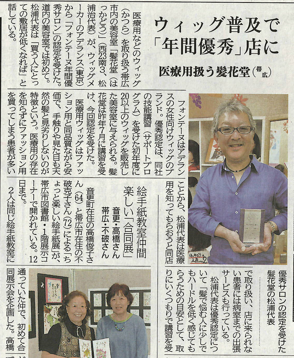 髪花堂は多くのお客様にウィッグをご提案し、フォンテーヌ年間優秀サロンとして認定されました。