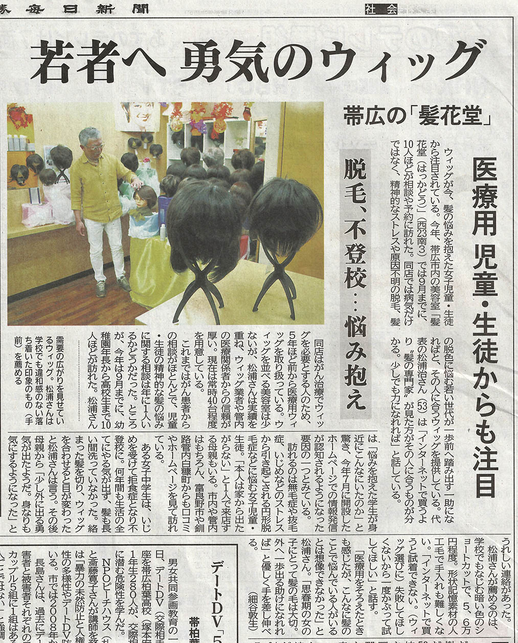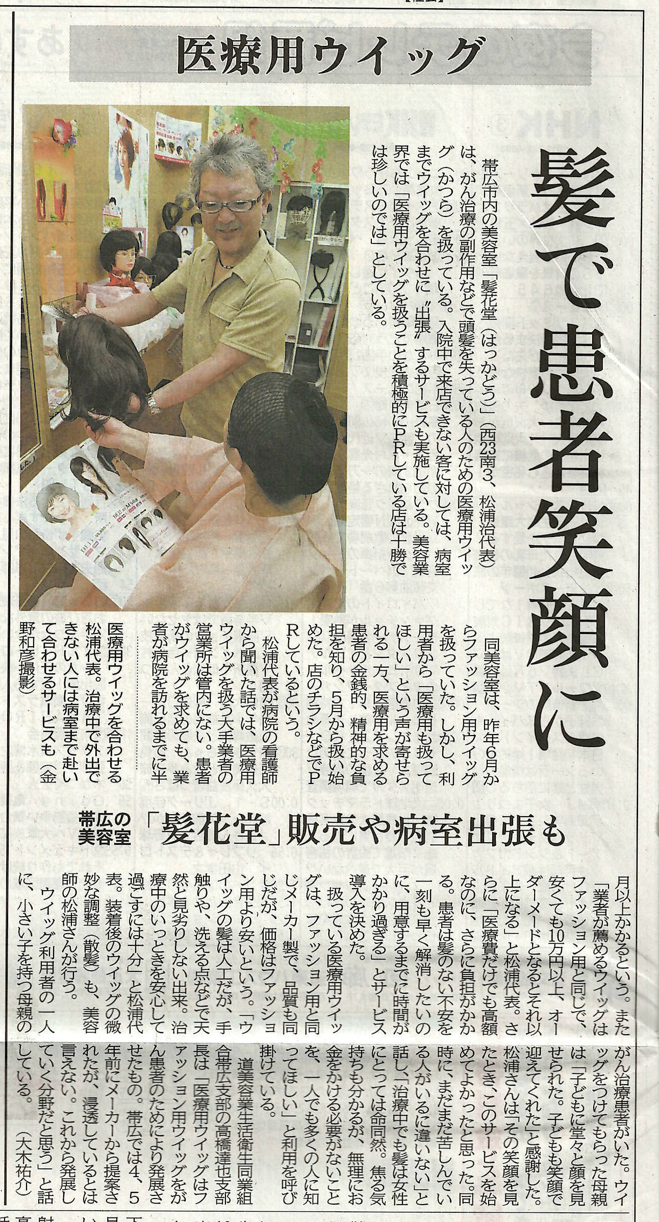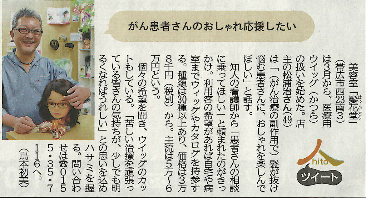 髪花堂は、髪がない人が来れる美容室として30年が経ちました。